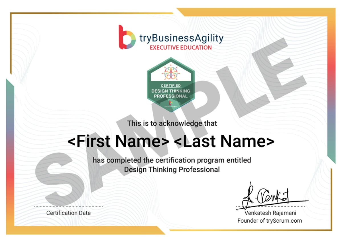 Yes. Every learner who completes the Design Thinking Course (Self-Paced) with tryBusinessAgility receives an official certificate of completion. The certification validates your understanding of design thinking principles and confirms your ability to apply them effectively in real-world situations.